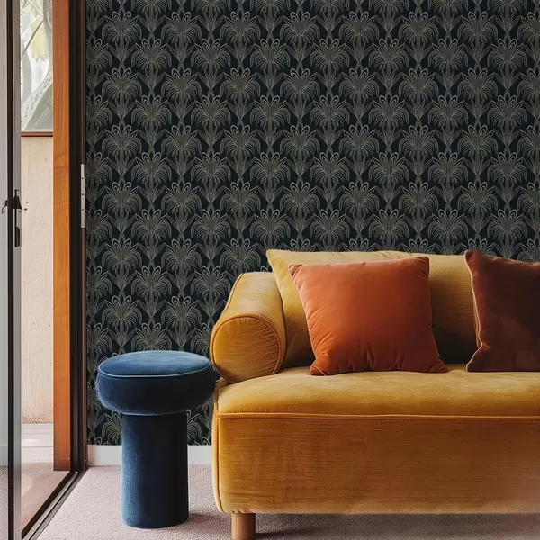 Papel pintado Adorno Art Déco oscuro con plantas estilizadas Nr. a01065