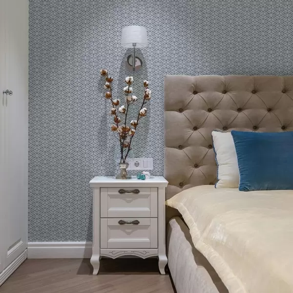 Papel pintado Patrón geométrico de cubos azul claro Nr. a01066
