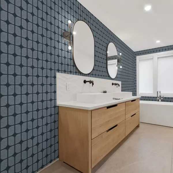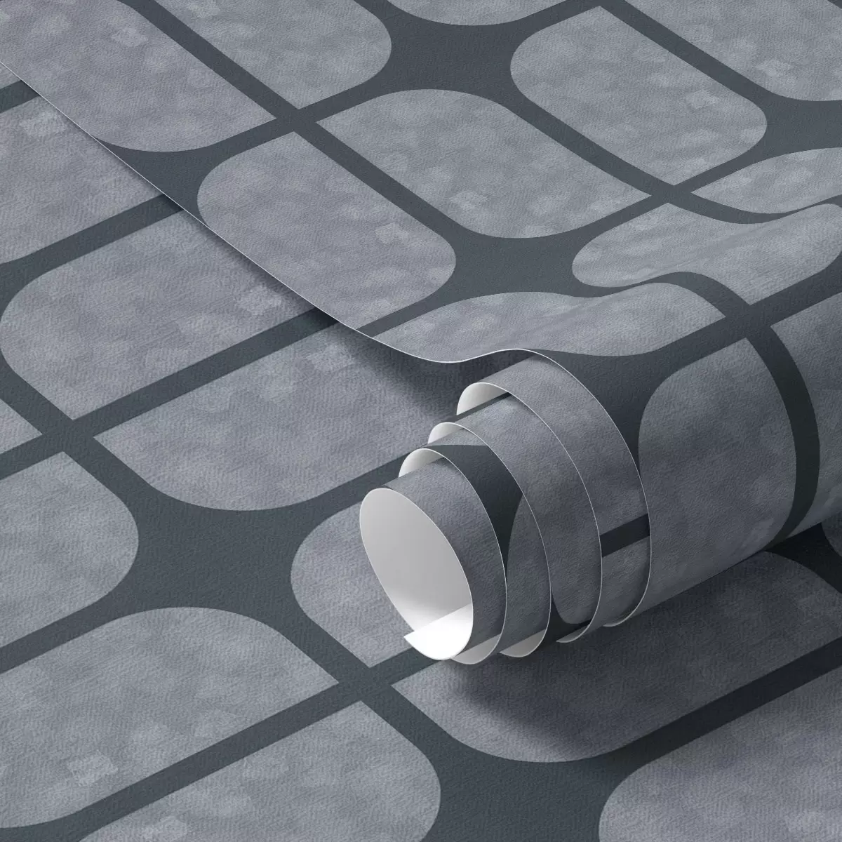 Papel pintado Fondo azul oscuro con mosaico gris de azulejos redondeados. Nr. a01068v1