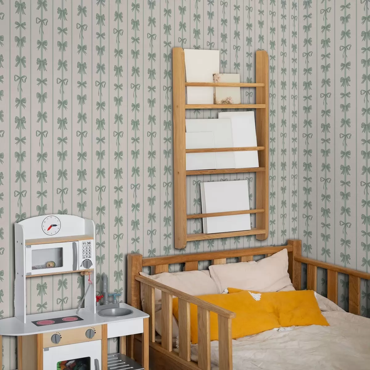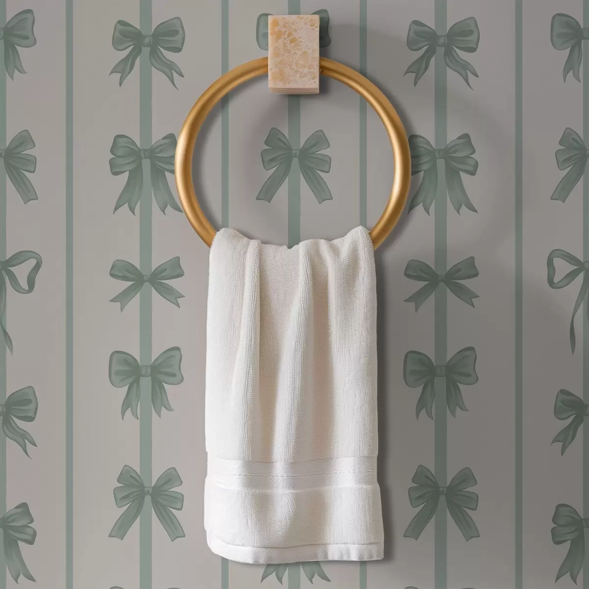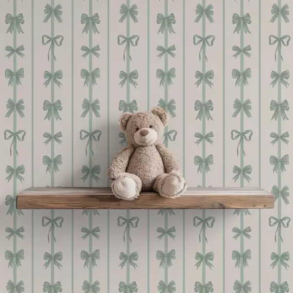 Papel pintado Lazos verdes a rayas sobre fondo beige Nr. a01075v1