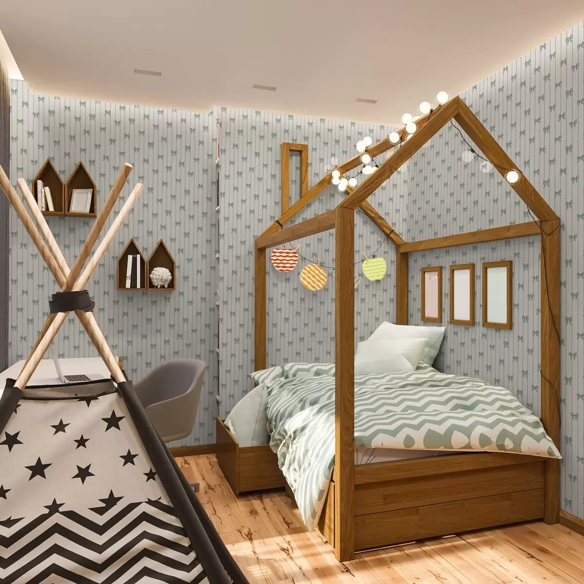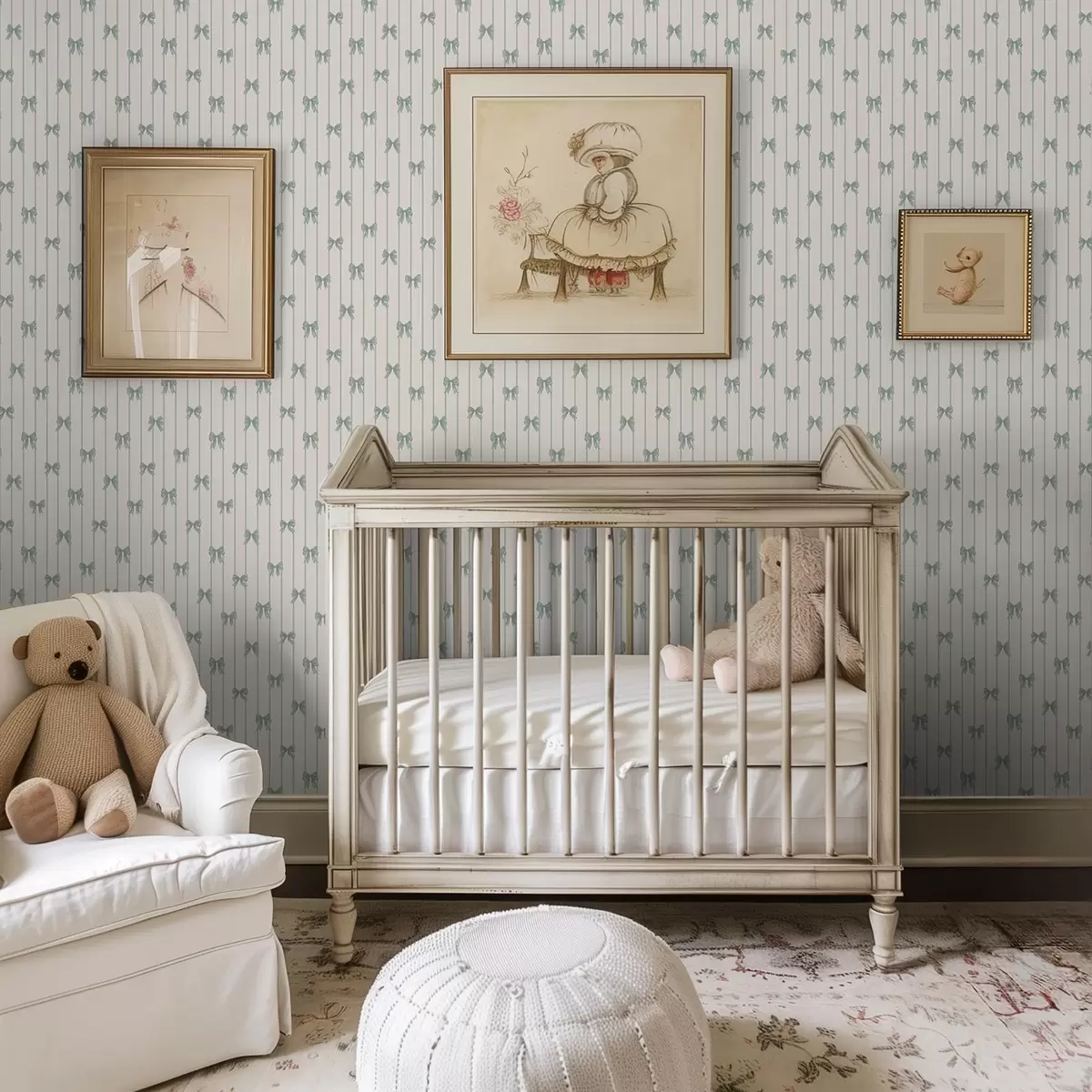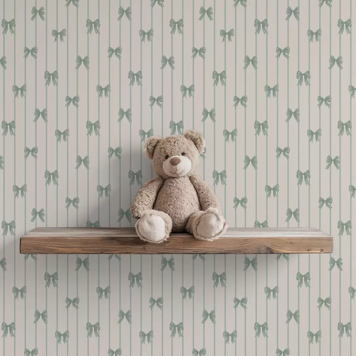Papel pintado Pequeños lazos verdes a rayas sobre fondo beige Nr. a01076v2
