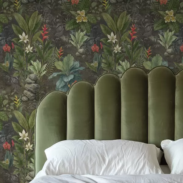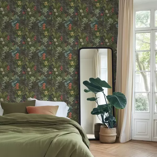 Papel pintado Jardín tropical oscuro con flores y follaje brillantes Nr. a01079
