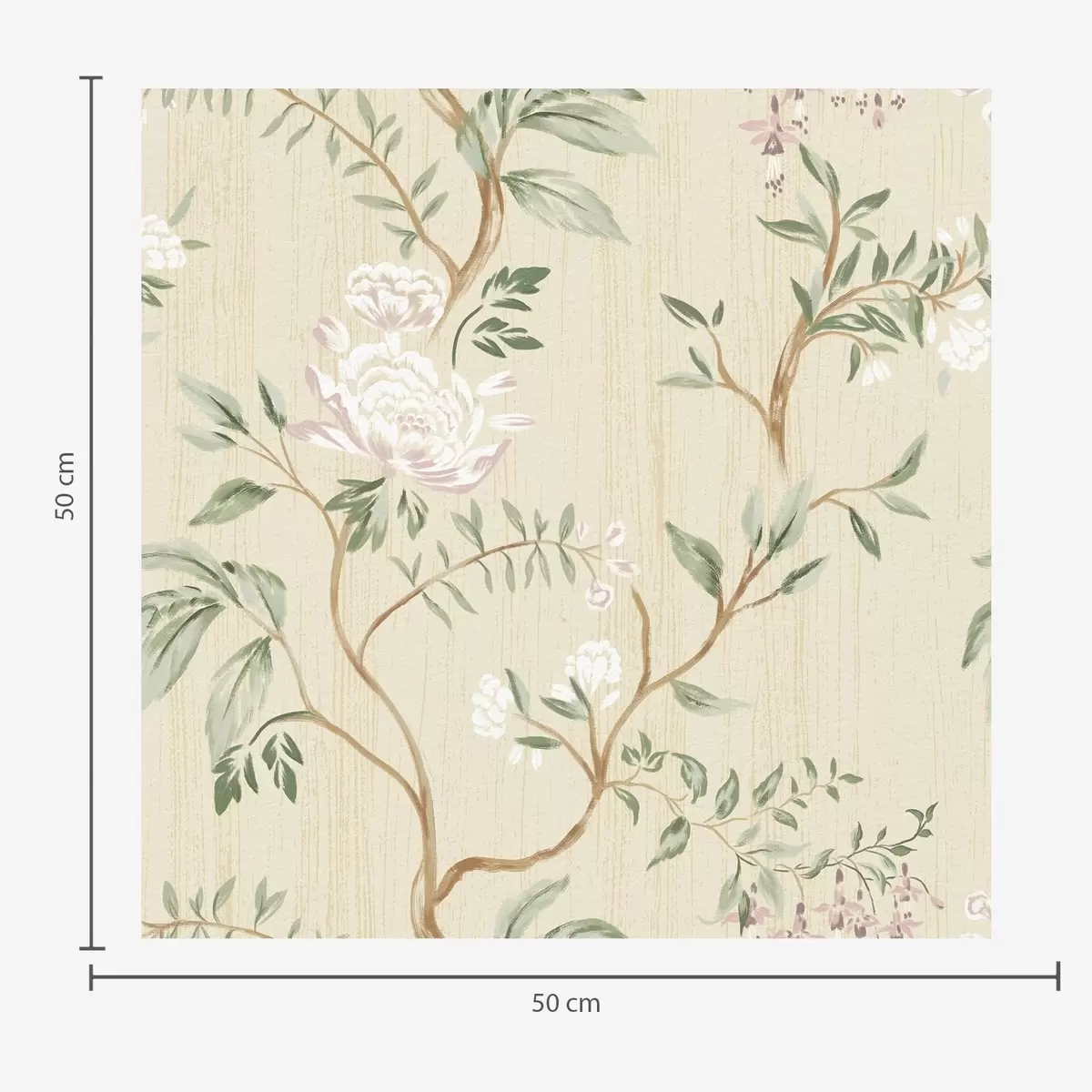 Papel pintado Delicadas ramas con flores sobre un cálido fondo color crema. Nr. a01084
