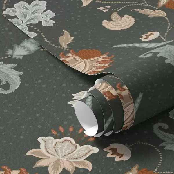 Papel pintado Fondo verde oscuro con flores y hojas decorativas. Nr. a01086