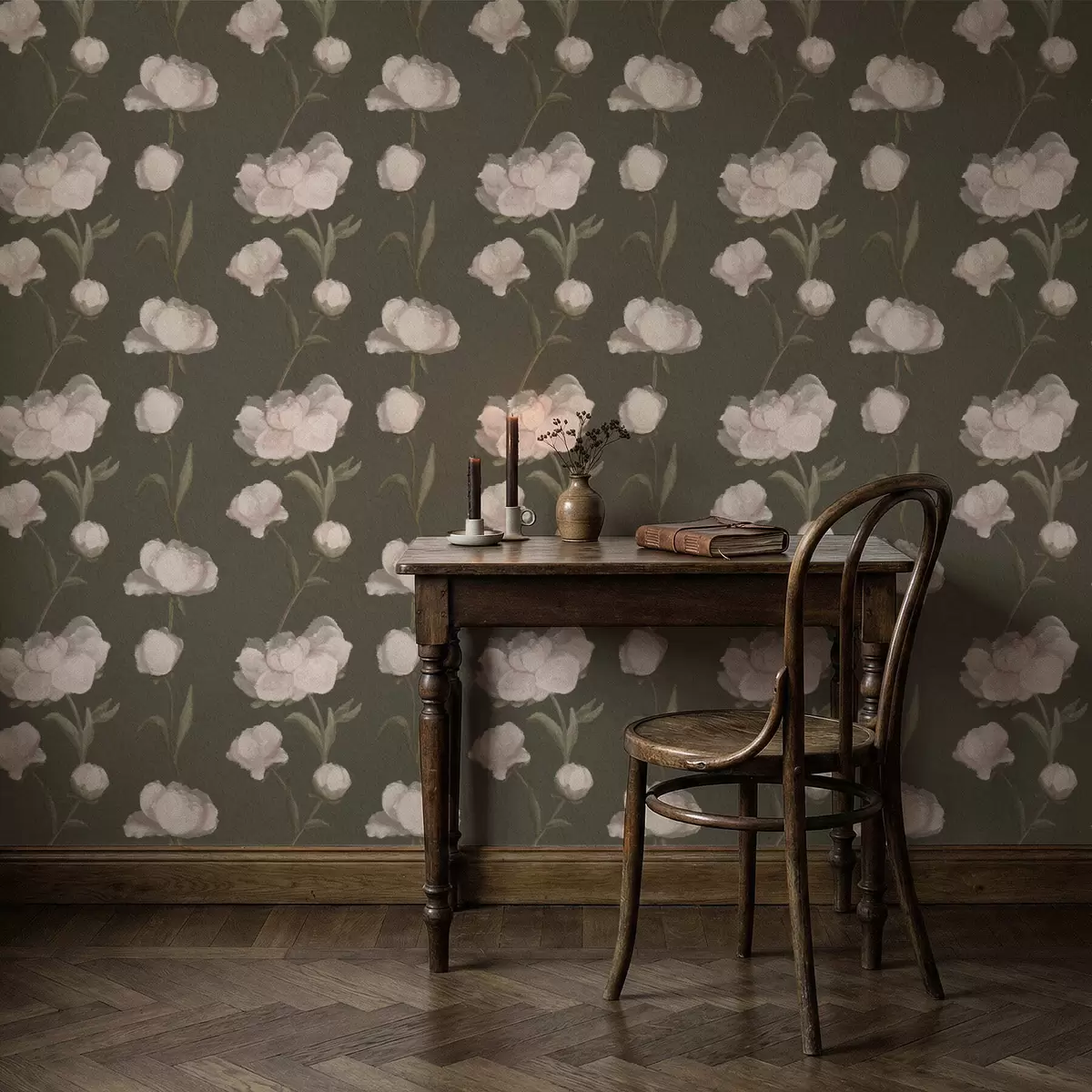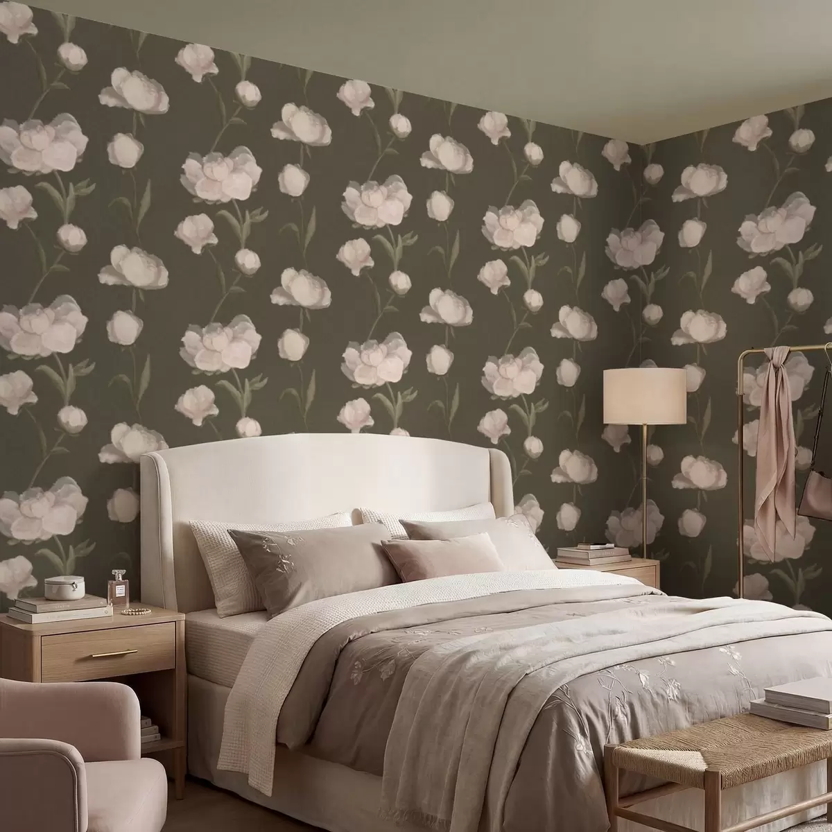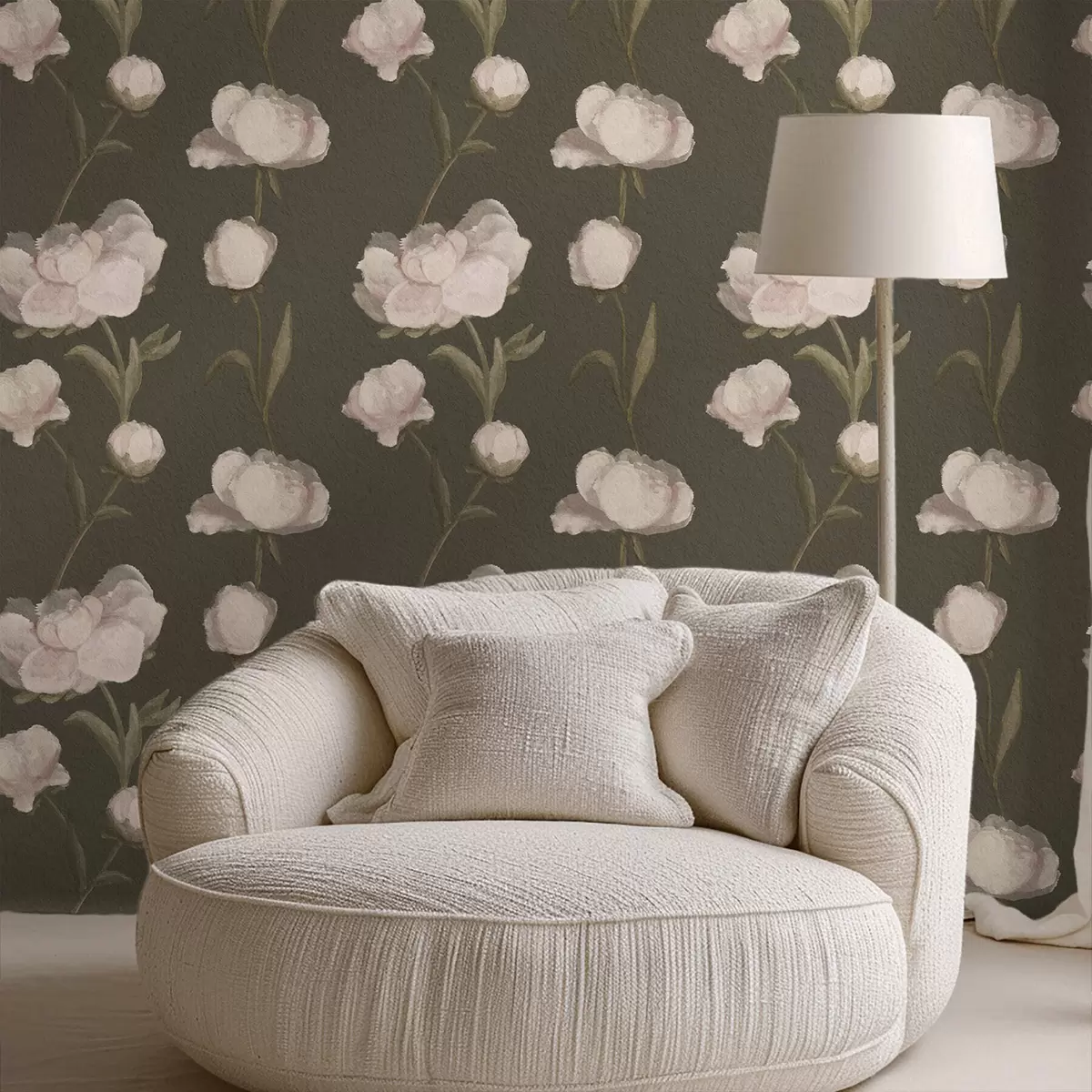 Papel pintado Peonías de color rosa suave sobre fondo oscuro Nr. a01114v1