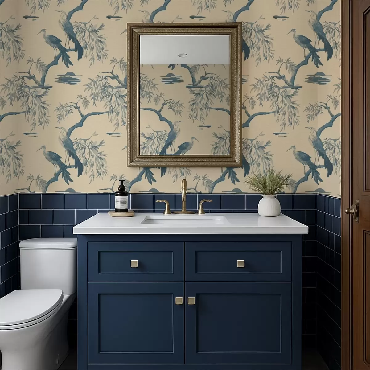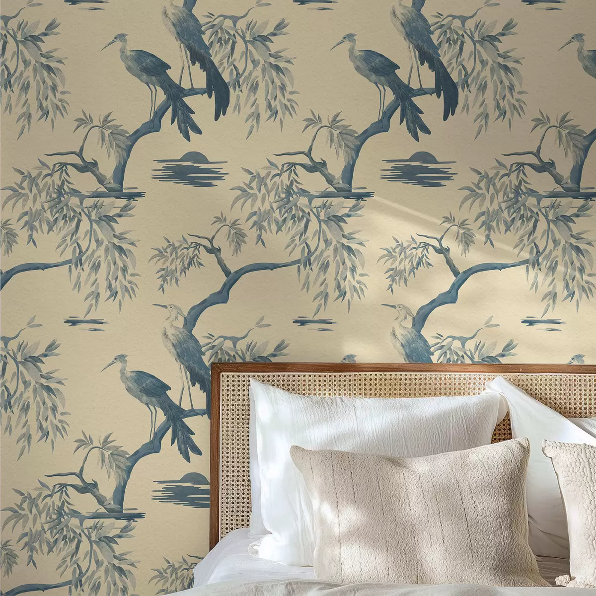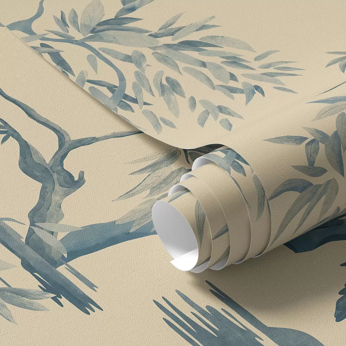 Papel pintado Pájaros en una rama en tonos azules Nr. a01116