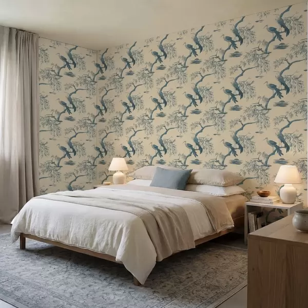 Papel pintado Pájaros en una rama en tonos azules Nr. a01116
