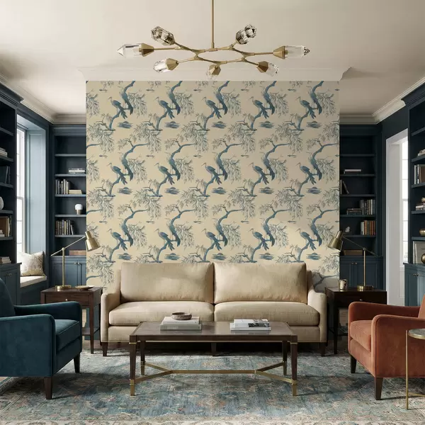 Papel pintado Pájaros en una rama en tonos azules Nr. a01116