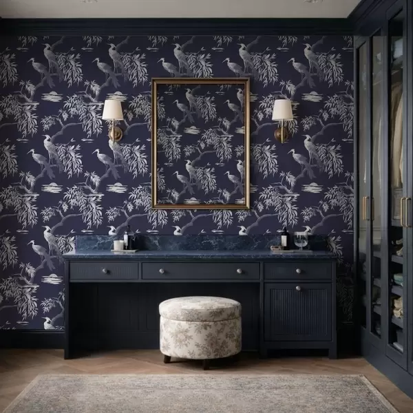 Papel pintado Pájaros en una rama sobre fondo azul oscuro Nr. a01116v1