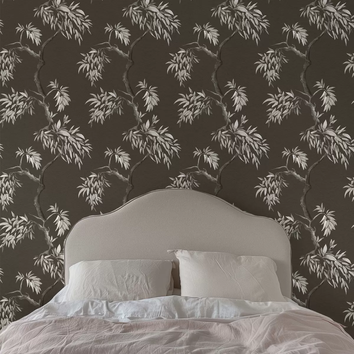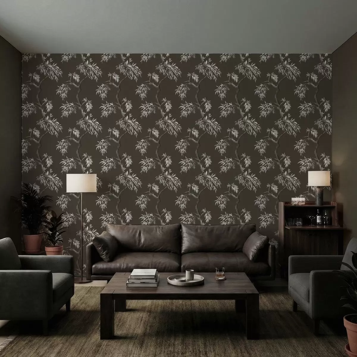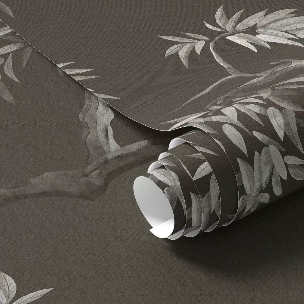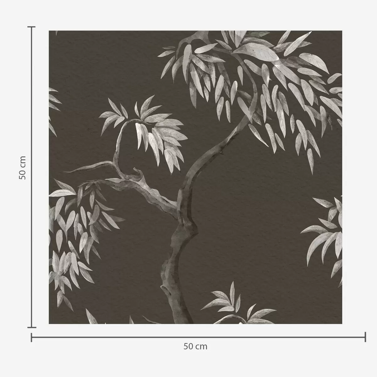 Papel pintado Rama monocromática con hojas sobre fondo oscuro Nr. a01117v2