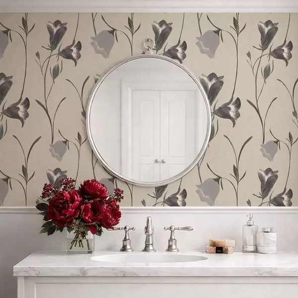 Papel pintado Flores grises en forma de campana sobre fondo beige claro. Nr. a01119
