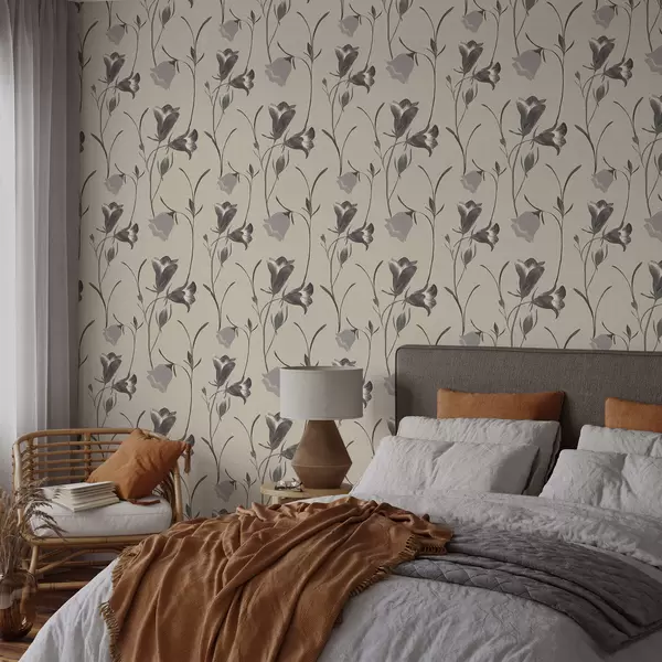 Papel pintado Flores grises en forma de campana sobre fondo beige claro. Nr. a01119