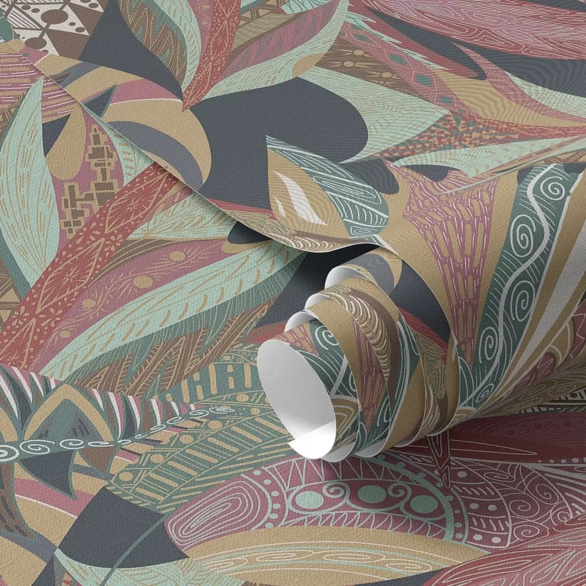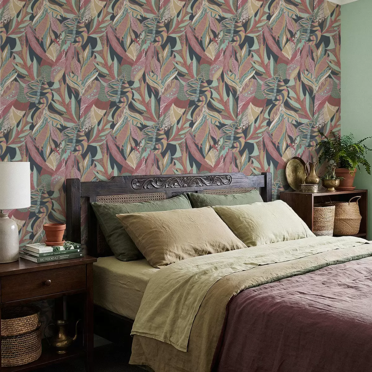 Papel pintado Hojas con motivos coloridos sobre fondo oscuro Nr. a01120