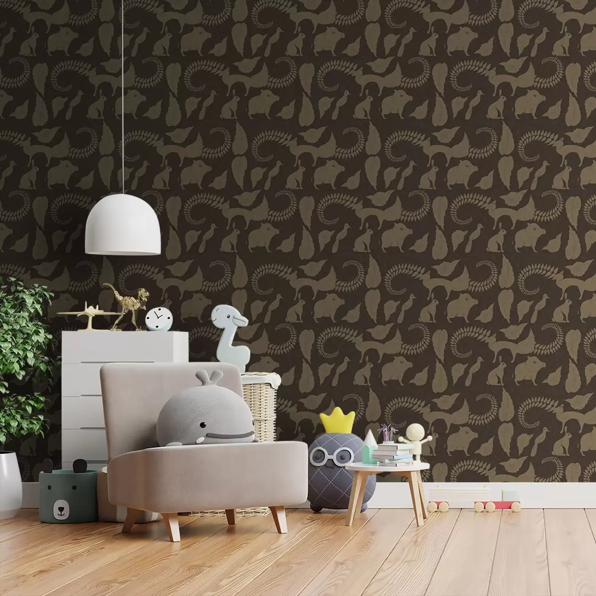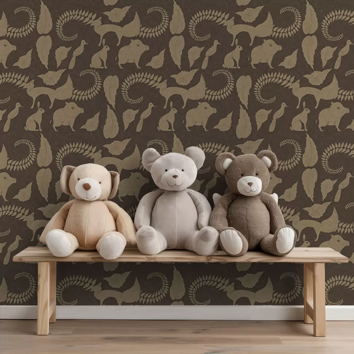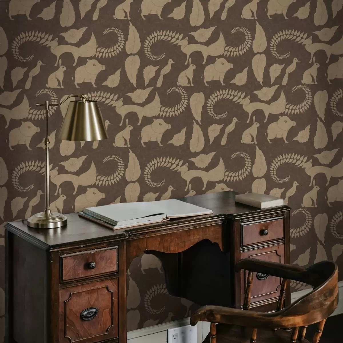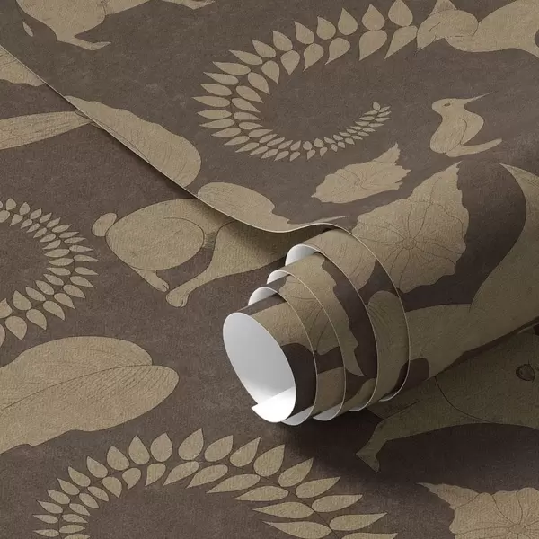Papel pintado Patrón forestal con animales sobre fondo marrón Nr. a01121