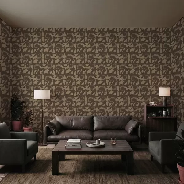Papel pintado Patrón forestal con animales sobre fondo marrón Nr. a01121