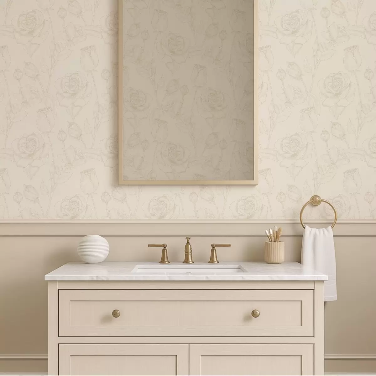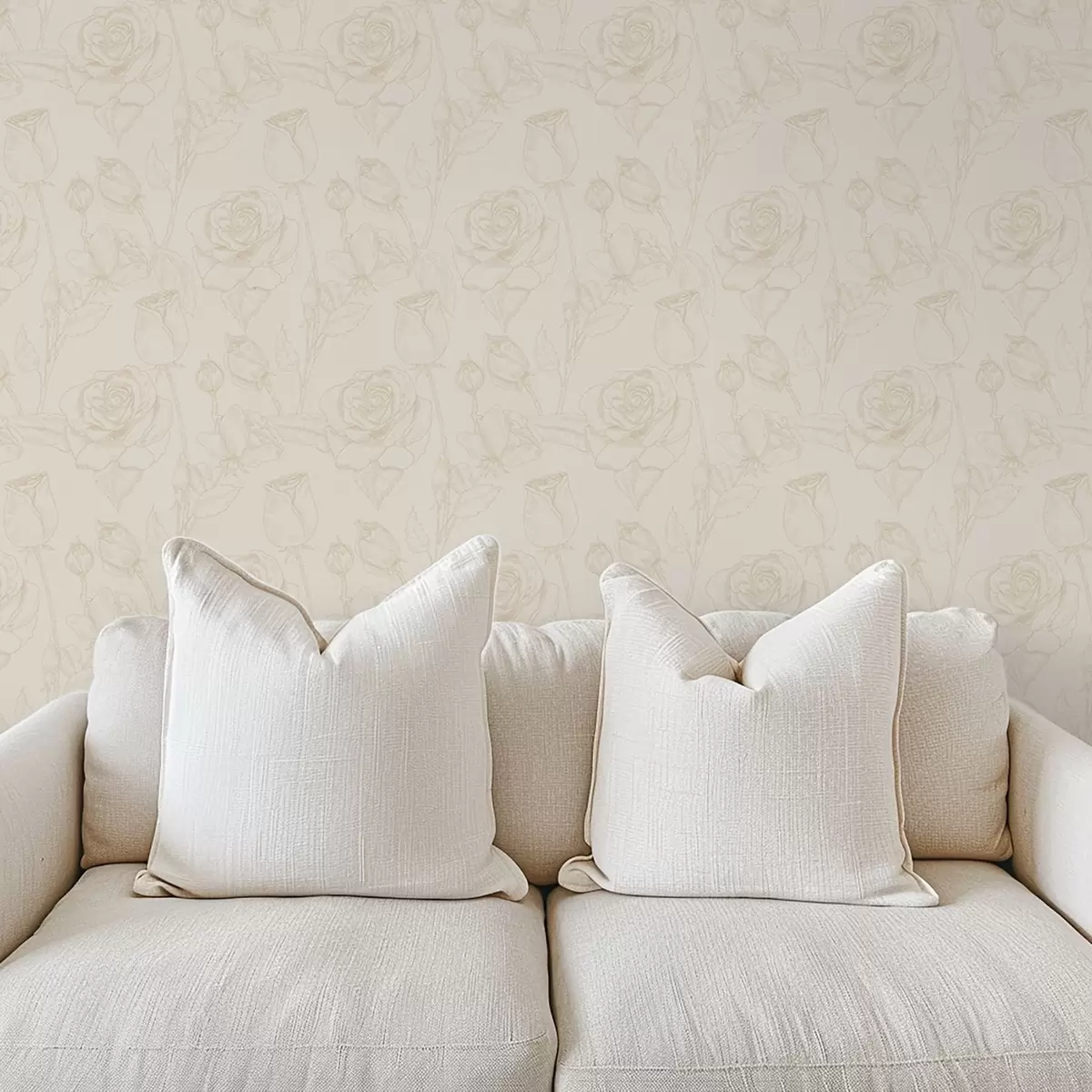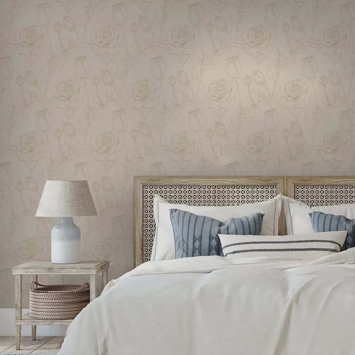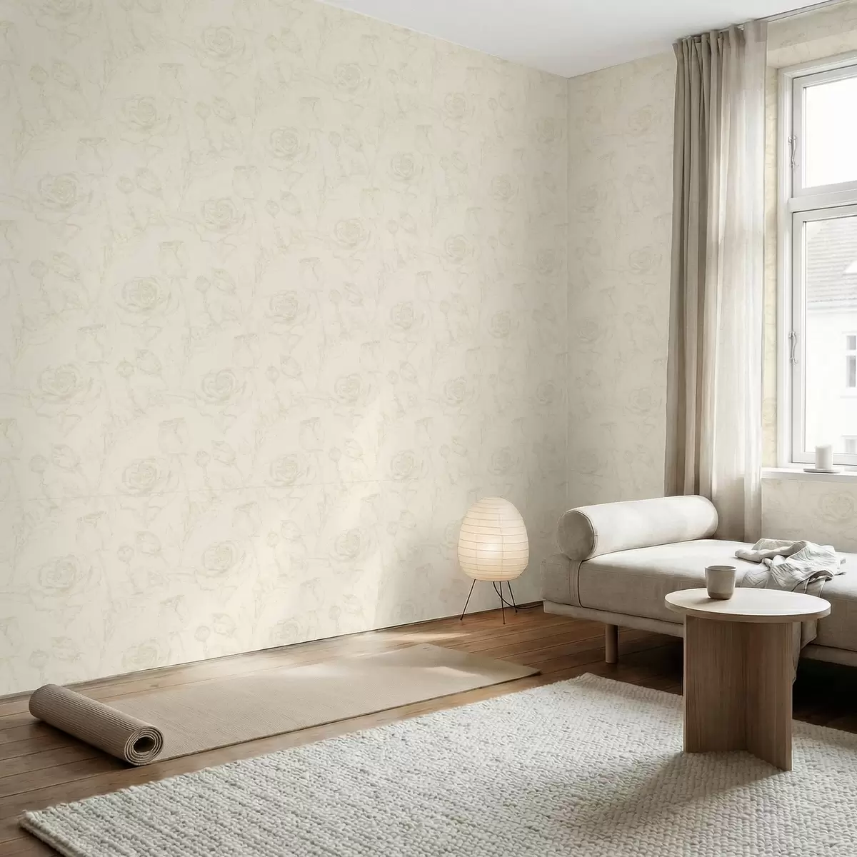 Papel pintado Patrón de rosas claras sobre fondo beige Nr. a01124