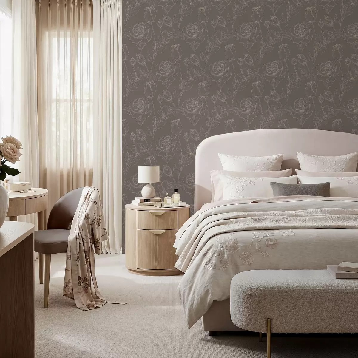 Papel pintado Patrón de rosas oscuras sobre fondo marrón Nr. a01124v1