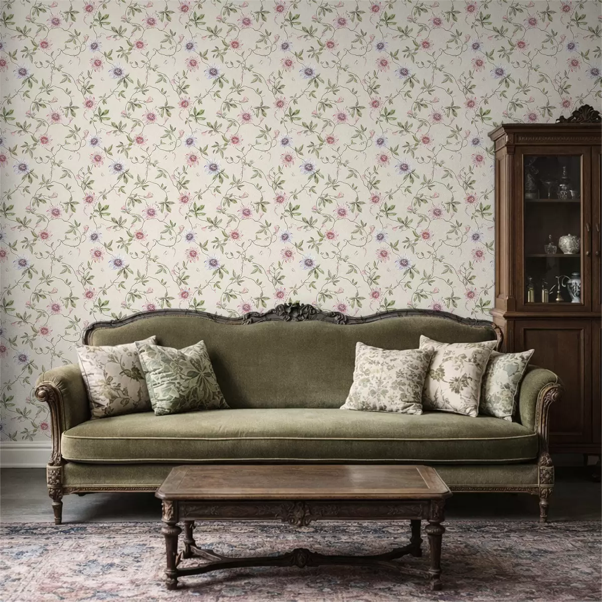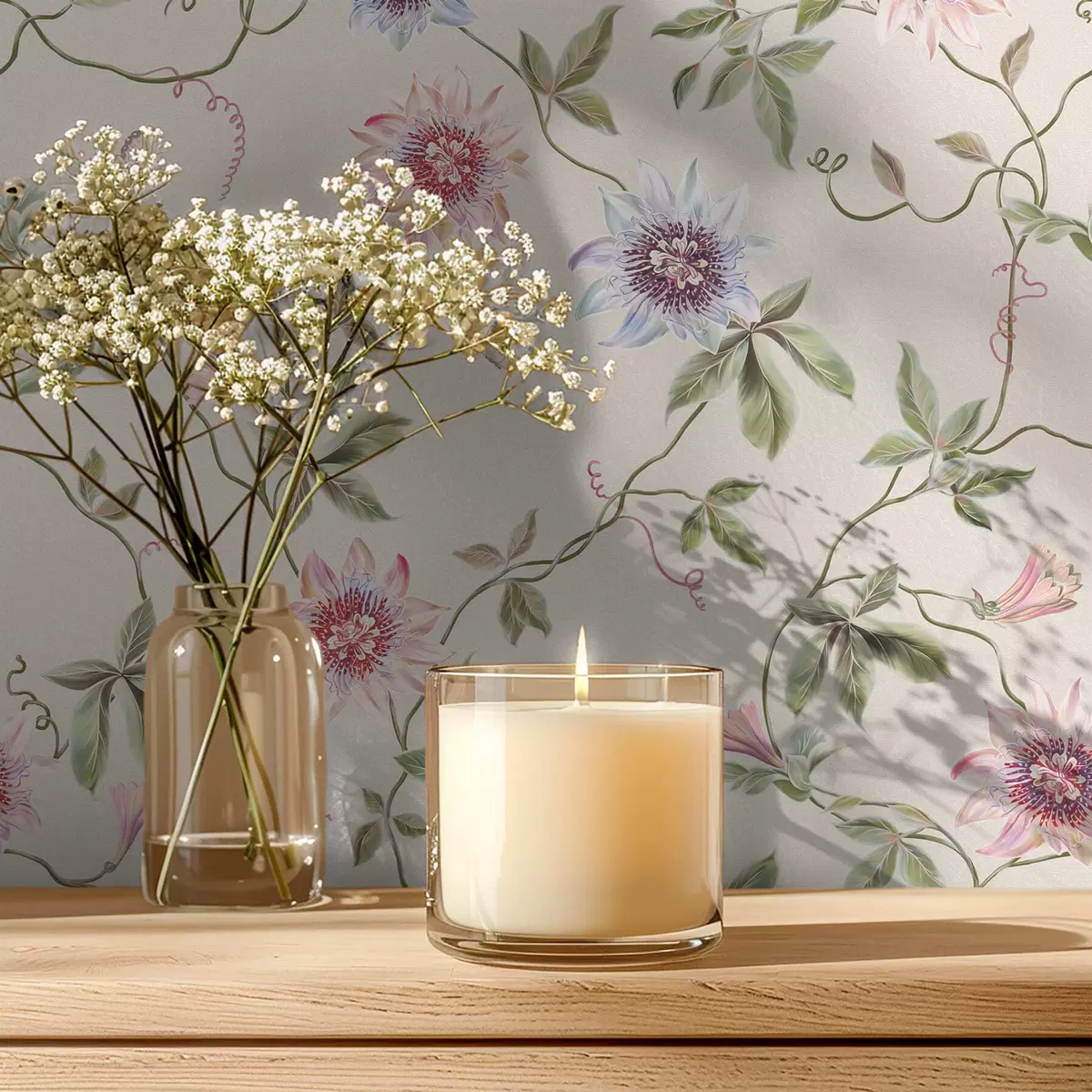Papel pintado Diseño con flores exóticas y enredaderas Nr. a01131