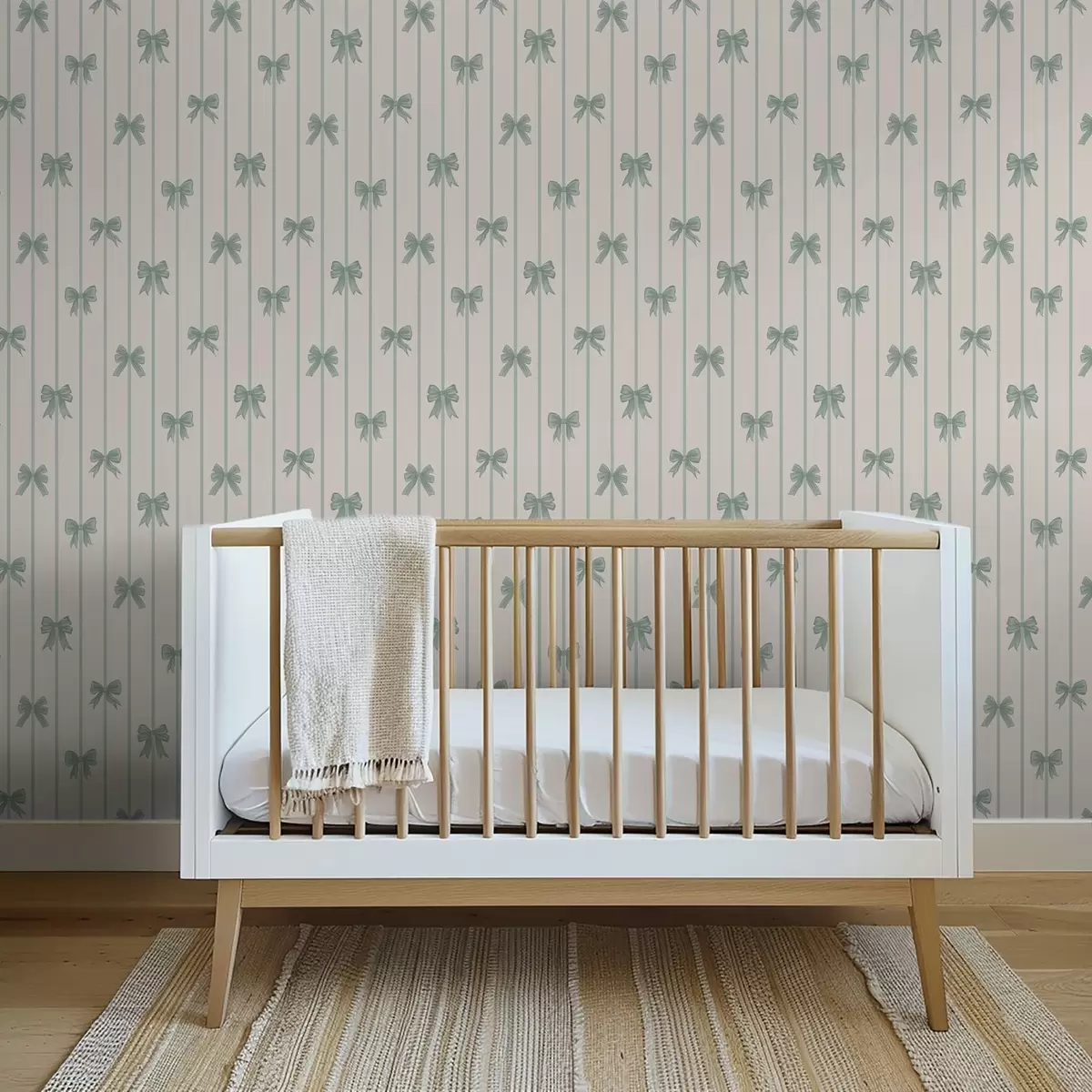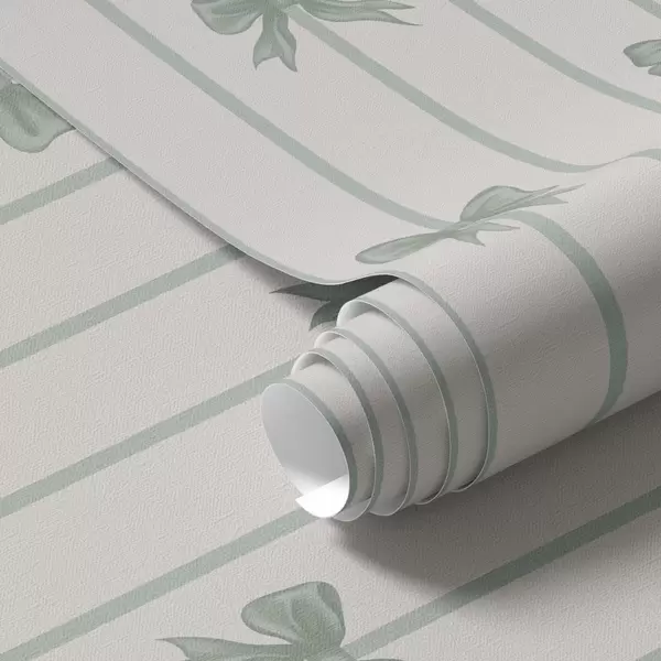 Papel pintado Lazos verdes sobre un fondo beige a rayas Nr. a01162v1