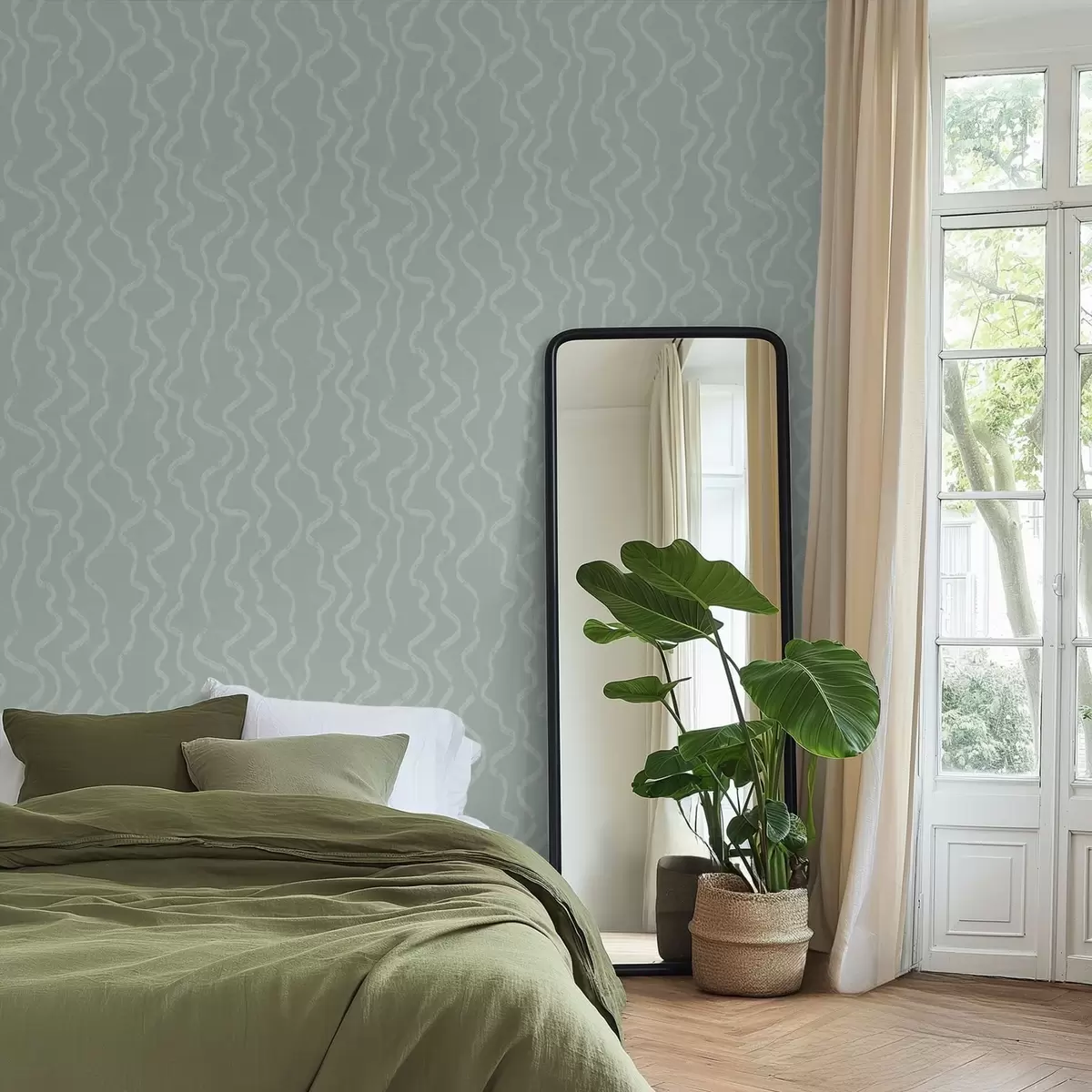 Papel pintado Dibujo ondulado sobre fondo verde Nr. a01167v2