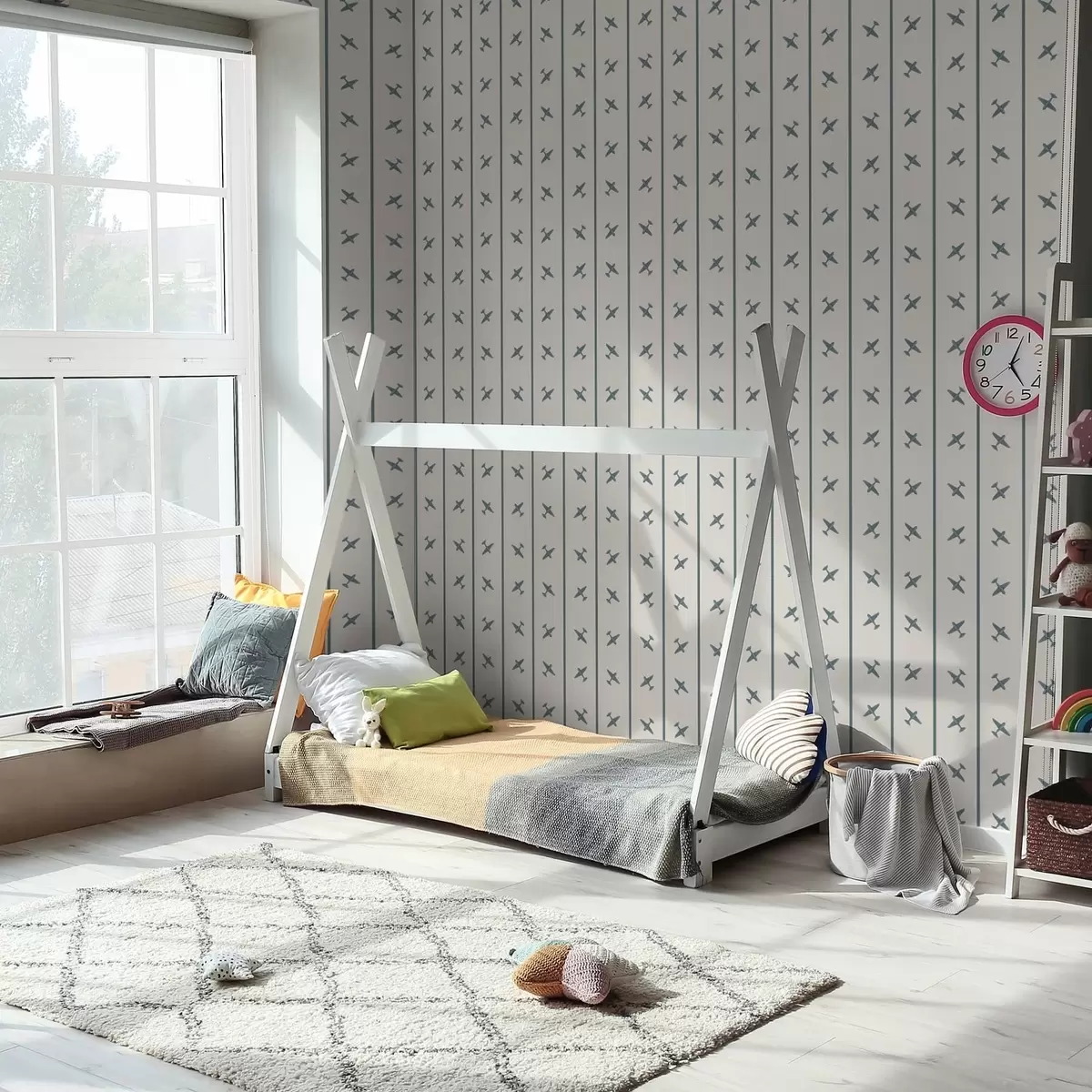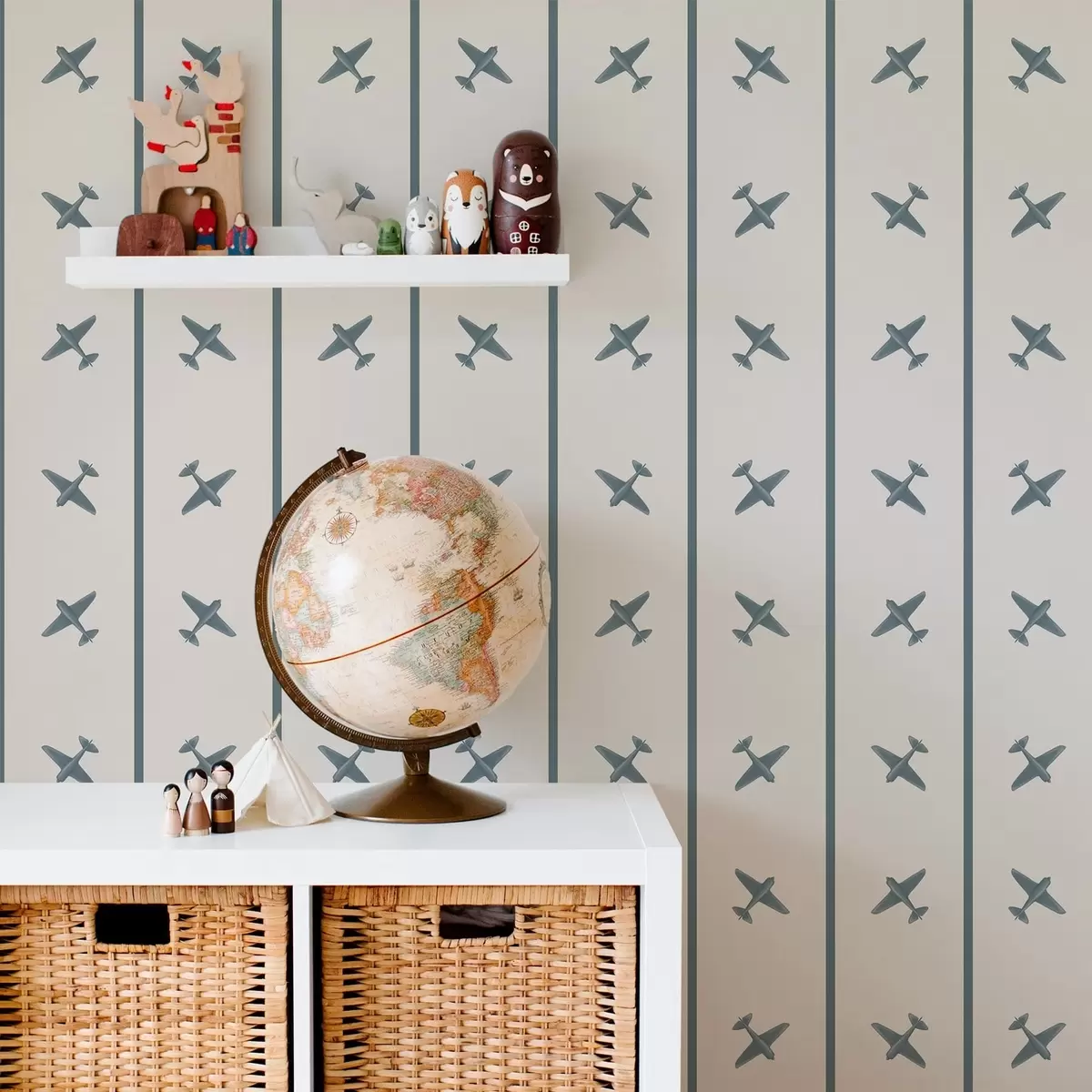 Papel pintado Aviones con diseño a rayas y detalles en azul Nr. a01169