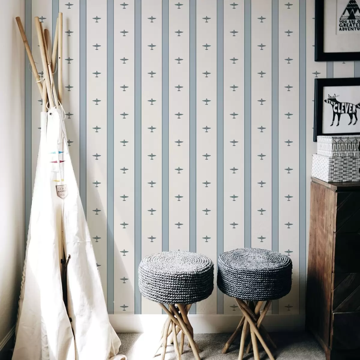 Papel pintado Aviones pequeños a rayas sobre fondo azul Nr. a01171