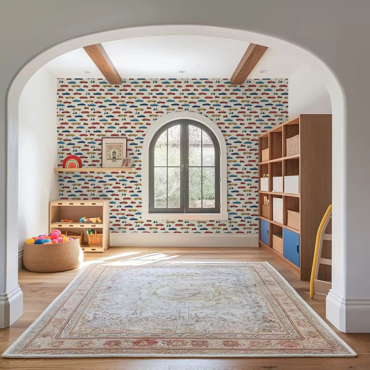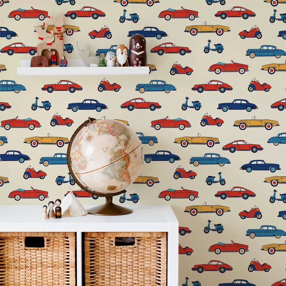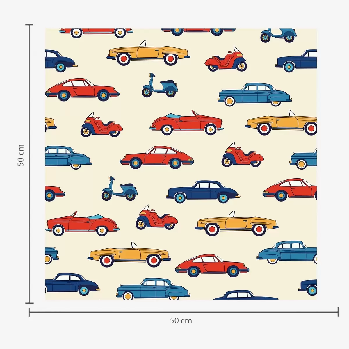 Papel pintado Coches y motos retro de colores vivos sobre un fondo claro Nr. a01172v1