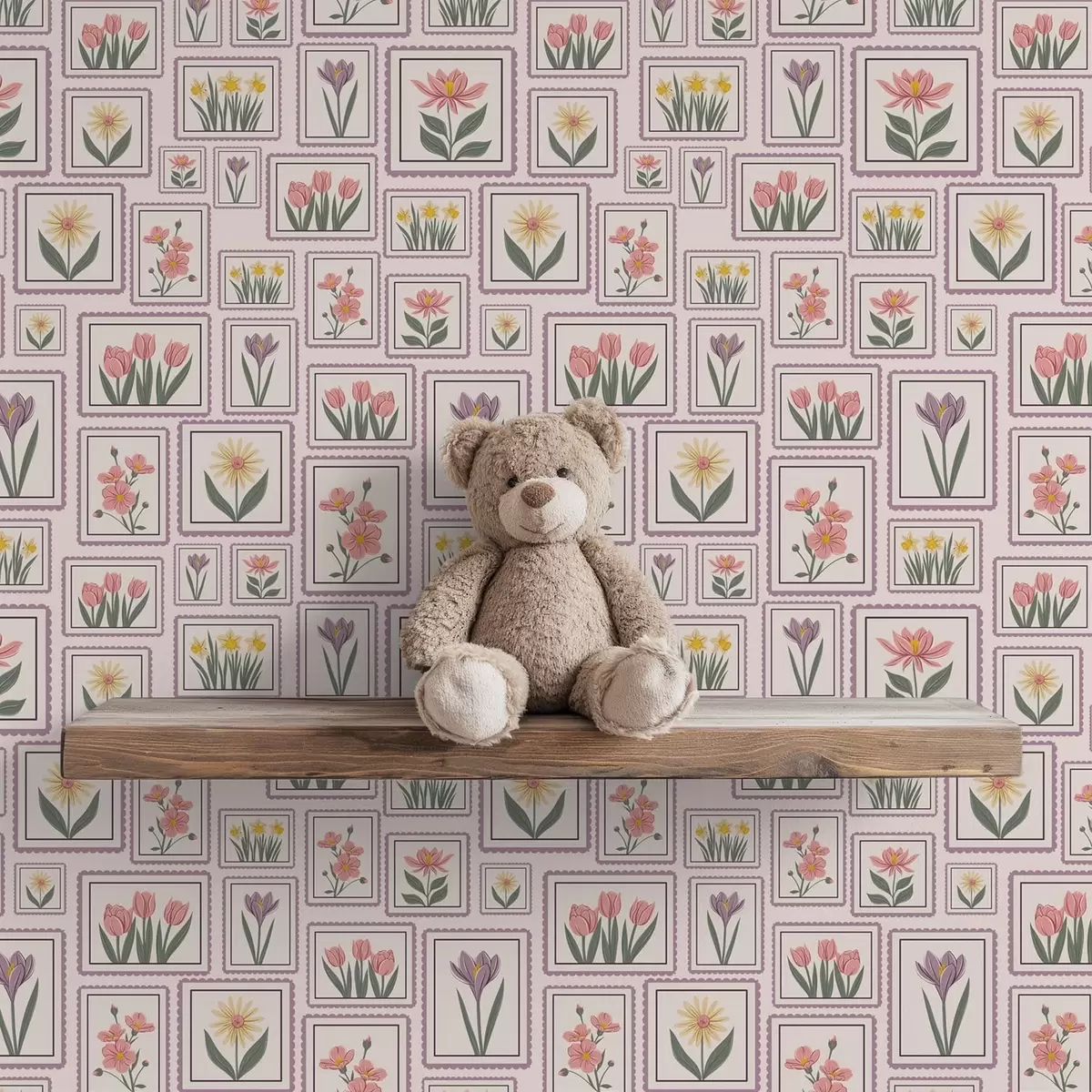 Papel pintado Ilustraciones florales enmarcadas en tonos lila Nr. a01173v2