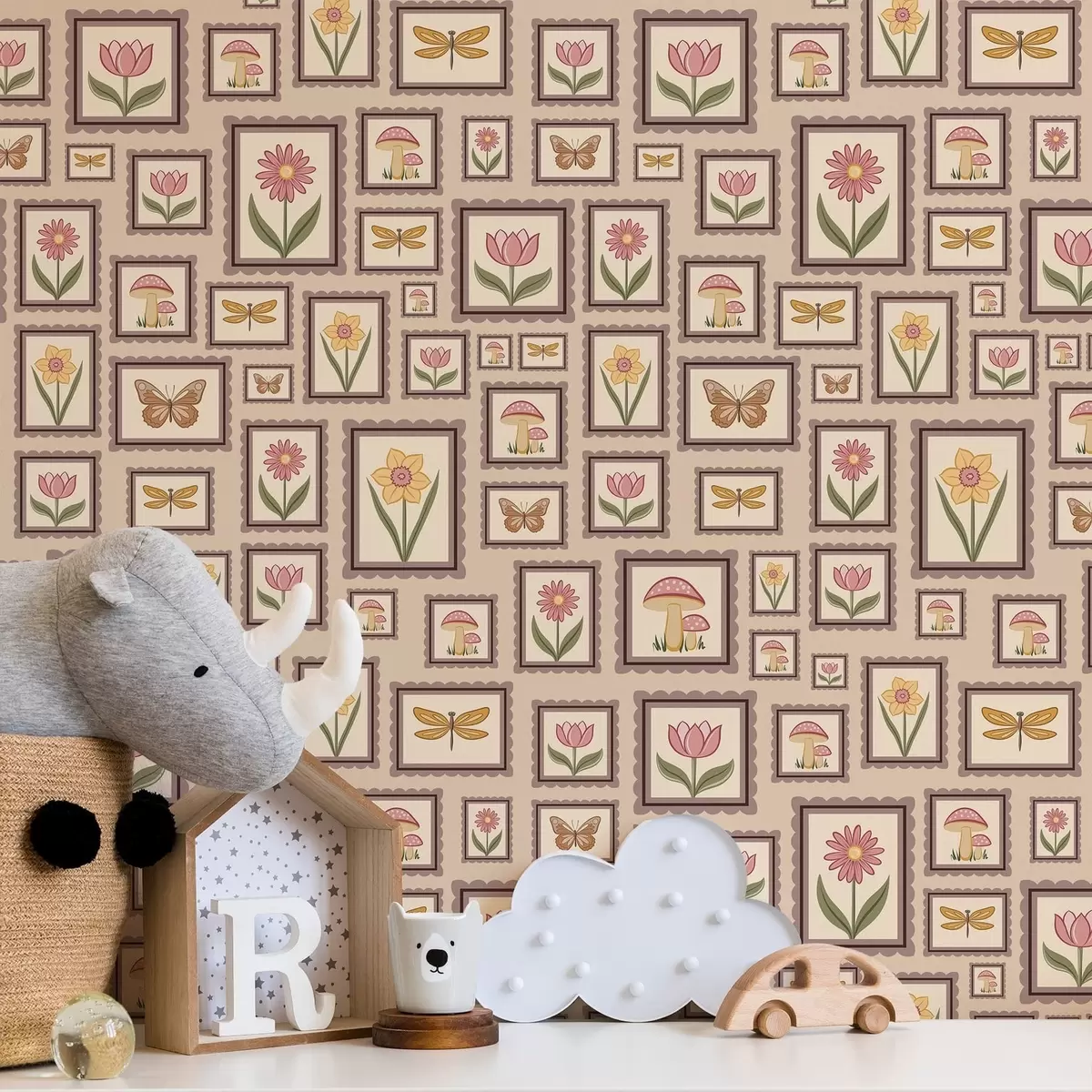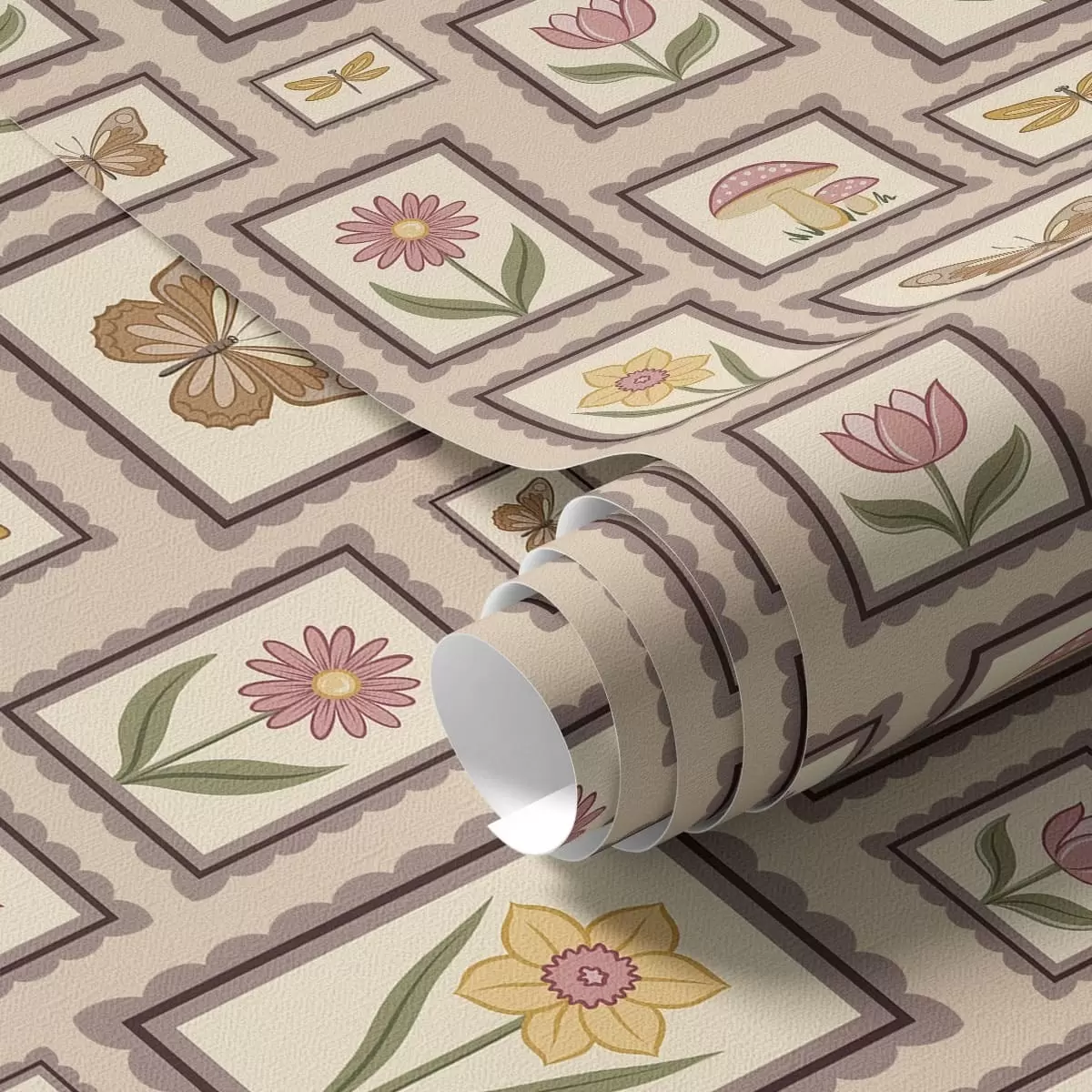 Papel pintado Ilustraciones enmarcadas en cálidos tonos beige Nr. a01176v2