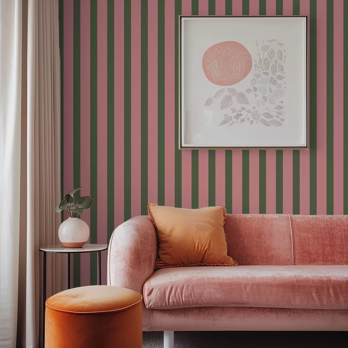 Papel pintado Rayas verticales rosas y verdes Nr. a01180v2