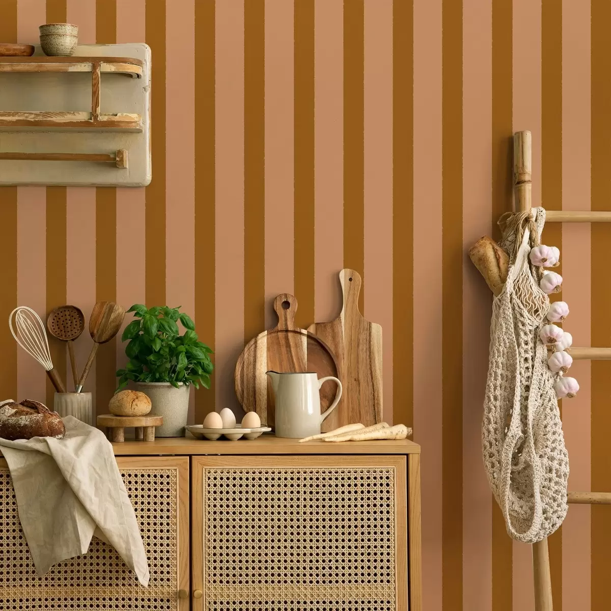 Papel pintado Rayas verticales en tonos marrones cálidos Nr. a01180v4